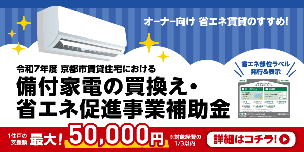 京都市内にお住まいになられている方で、現在、居住されている住宅に設置されている家電を対象製品に買換えをされる方